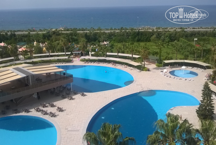 Были в отеле в мае с супругой и друзьями. Приехали в отель ближе к обеду (я с супругой приехали раньше друзей на несколько дней). Заселили в течение часа. За это время успели пройтись по территории и до пляжа, багаж оставляли на рецепшн. За номер не доплачивали. Номер дали на самом верхнем этаже с видом на море (очень хороший вид) и сам номер неплохой, все работало, претензий с нашей стороны не было. Номер убирали каждый день, пастельное за две недели поменяли раза 3 или 4, полотенца меняли раз в 3 дня, причем полотенца для ног меняли только если оставишь их на полу. Пляжные можно менять хоть каждый день в определенные часы на 1 этаже в хамаме. Хамам тоже бесплатный. Отель красивый, красивая территория, все чистенько. Выход на пляж через подземный переход и очень красивый (на выходе растут какие-то растения с цветами, очень красиво), сам поземный переход ухоженный, всегда чистый. Пляж песчаный, широкий, достаточно чистый. Мусорили сами отдыхающие, но все убиралось работниками отеля. Вход в море пологий, песочек. Есть пирс, мы в основном купались с него. Кафе-бар (или кафе-ресторан) на пляже, на обед можно не уходить разнообразие блюд большое, но в основном ресторане выбор богаче. В баре на пляже помимо безалкогольных напитков есть пиво, вина и другие крепкие алкогольные напитки (мне больше всего понравился виски). С начала народу было мало, но к концу мая ощутимо прибавилось и стало шумновато. Было много россиян, немцев, белорусов, немного украинцев ну и еще кто-то. Питание на 5, всего было вдоволь и разнообразно. Ежедневно несколько видов рыбы в разных вариациях, мясо говядина, баранина, курица и это тоже приготовлено по разному, сладостей (даже я, равнодушный к сладостям, начал там все пробовать), фрукты, овощи. Хотя по приезду народу было мало, все заявленные на сайте бары работали (у каждого свое время), за исключением основного (работает 24 часа). Анимация была, но мы её ни разу не посетили, поэтому ничего не могу сказать. В вечернее время пойти некуда, т.к. по близости нет ничего. Справа отель примерно в 2х - 3х км. и слева то же самое. Несколько раз ходили на небольшой рыночек расположенный позади отеля, который слева (если стоять лицом к морю). Набор сувениров такой же как в отеле, только торгуются более охотно и фрукты, овощи, ягоды стоят копейки. В принципе хороший отель для спокойного отдыха.