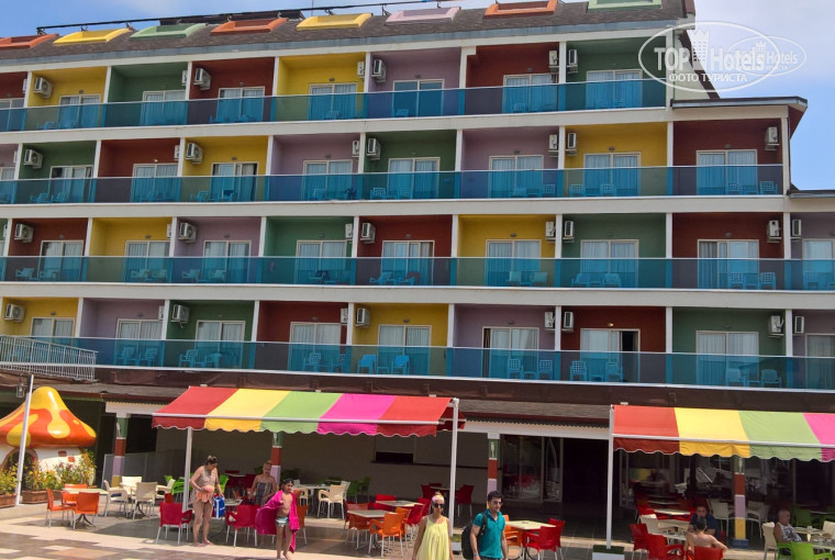 Начну сначала.Поехали мы с семьей, я жена и ребенок 6 лет в отель.Сначала думали будет не очень, почитали отзывы и подумали, ну разок отдохнуть можно.Как приехали, моментально мнение поменялось,завтрак очень хороший,есть почти все что душа пожелает(и для ребенка тоже)Аниматоры молодцы,постоянно пытаются помочь, подсказать,очень приветливые(особая благодарность аниматорам с Украины ,(Рома Маша и Женя)).К морю минут 5-7 пешком или можно подождать, ходит автобус каждые пол часа.Недалеко супермаркет "шок" там намного дешевле чем в обычных магазинах.Много внимания уделяют детям.И еще много чего хорошего, долго расписывать не буду)Единственный минус (я считаю для молодёжи)это то, что дискотека в гостинице заканчивается в 23;30 , но кто хочет повеселиться дальше могут поехать в "диско тур"это выездная дискотека, стоит 10 долларов, и можно веселиться до 3 ночи.