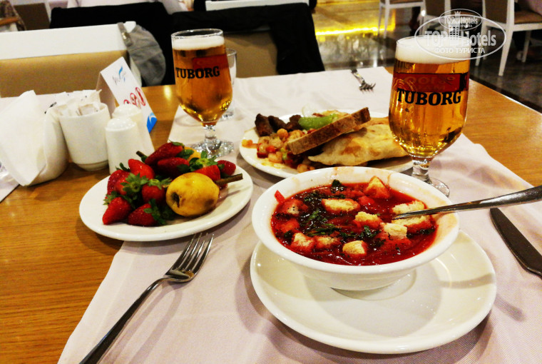 Теперь о минусах : ужасная слышимость в номере, слышно всёёё, кто храпит, кто просто разговаривает, кто сексом занимается и тд)))) Такое впечатление что стены картонные! На море крупные камни , поэтому берите тапки, без них тяжело. многие разбивали коленки, но вода конечно чистейшая, ещё это отель любят турки и проводят разные конференции вот мы как раз попали в этот период, сразу тяжело было найти свободный столик, но официанты молодцы, шустрые , старались как могли. И ещё ,берите фумитокс , в последний день зажрали комары (хотя и есть москитная сетка на балконе) конечно можно было закрыть балкон но кондиционеры не работали ещё ! В целом ставлю твёрдую 4 . В целом всё ХОРОШО!!!