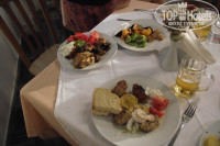 Питание все включено: вроде очень разнообразное, много закусок, салатов, горячее на выбор, 1-2 супа, десертов очень много, мороженое. Но уровень приготовления немного хромает, особенно рыбных и мясных блюд, рыба, как правило очень сухая, иногда горчит.. Пиво, вино белое и красное, без ограничения, сам себе наливаешь. Если вечером подают что-нибудь вкусненькое, или экзотическое, все расхватывается очень быстро и как правило, не пополняется, ставят на это место уже овощи какие-нибудь, что попроще, видимо количество блюд, как и размер столовой, все-таки маловаты , когда отель заполнен.