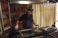 Шеф-повар каждый вечер устраивает шоу - готовит что-нибудь на гриле, привлекая детей, например на огромной сковороде жарит виноградных улиток, шумно подбрасывая их вверх и что-то напевая.. Но все это происходит в зале, где люди едят, чад застилает глаза, запах тоже присутствует, обычно это делается на открытом воздухе, но здесь повару нужна публика, да и места у отеля не так много.