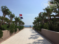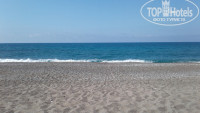 Пляж у отеля мелкая галька,перемешанная с песком. С моря намывает гальку покрупнее. Если больно ходить по крупной, захватить с собой купальную обувь. Вход в море резкий, подойдёт для полноценного купания для взрослых. Маленькие дети смогут купаться только с родителями. Или в детском бассейне на территории. На море есть пирс. В период нашего отдыха с него мы увидели кальмара, проплывающих мимо дельфинов. На пляже есть развлечения, водные виды спорта. Невероятный адреналин. Мы прокатились на водном мотоцикле. Есть парашюты, водные прогулки на лодках. Все интересно.Есть пляжный волейбол. Пробуйте. Лежаков достаточно, есть тенты от солнца, места для переодевания, душ и ,конечно, же бар. Днём можно с моря не уходить, обедать прямо там. Вкусно и разнообразно. Рыба приготовлена поварами с особым старанием.