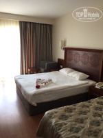 Отмечу, что все в отеле продумано: все- до мелочей. Это восхищает. Здание выстроено в форме подковы, состоит из 6-и этажей и 80 % номерного фонда имеет балконы с видом на море. Остальные 20 % номеров смотрят на великолепные Торосские горы. На балкончике можно посидеть вечерком и почитать книгу, полюбоваться пейзажами. Здесь есть столы и стульчики, сушилки для белья. Общая площадь номеров около 25м2, все для вашего комфорта есть(не берите лишнее в дорогу)-шампунь, гель для душа, кондиционер для волос, мыло,фен, полотенца. Все пополняется ежедневно.Есть минибар, сейф(платный), плазменный телевизор с русскими каналами. Мебель в хорошем состоянии.Единственное, что можете захватить с собой в номер -тапочки. Полы мраморные и ногам бывает прохладно. Берегите своё здоровье! В отеле можно взять халаты и тапочки на весь период проживания. Платно. Услуга по необходимости. Если Вы приехали в сезон, в жару, Вам они могут вовсе не понадобится.
