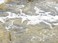 Есть 2 выхода к морю....Выход от корпуса Инжекум ,дно более каменистое ( камни расположены в метрах 10-12 от берега и заходу особо не мешаю ,но нужно быть аккуратнее,что бы не поранить коленки.Если занимать лежаки ближе к соседнему отеля Алара Парк,то там еще большие проблемы с дном .Хотите меньше камней в глубине ,выбирайте лежаки ближе к корпусу Селекта,ближе к Руби Платинум. Сам берег песок и мелкая калька ,обувь специальная не требуется.Пляж отеля находится в бухте и соответственно,штормит чуть меньше ,чем в открытом море и у нас ни когда не было запрета на купание .Разговаривая с гостями из других отелей ,от них слышали ,что им запрещали купаться в море ,т.к большие волны могут утащить в море. Ну и в бухте море прогревается чуть быстрее ,чем просто открытое море.