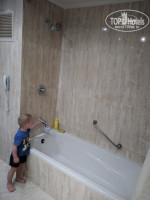 Когда прилетели,это около 7утра нам сразу одели браслеты и предложили позавьракать ,завтрак с 7 утра.После дали номер.Номер оказался на 3этаже,нам с детьми с коляской иногда ходить не очень понравилось.