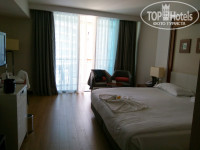 Были в отеле с 10.04 по 28.04.2018 г. Приехали в 10 утра, на ресепшн сказали что номер будет готов в 12.00 и отправили на завтрак. В 12 часов проводили в номер. Комнату дали, как мы и просили, с балконом и боковым видом на море и соседний отель. Кстати, там очень шумная анимация, поэтому семьям с маленькими детьми лучше брать с видом на окрестности. Номер небольшой, но на двоих места вполне достаточно (фото), по тv идёт несколько русских каналов, имеется чайник и набор для чая и кофе. Мини бар с соками, газировками и пивом, пополняется ежедневно. В ванной комнате халаты, тапочки, гель для душа, лосьон, шампунь, кондиционер, зубная паста и щётки. Кондиционер работал исправно. Уборка номеров хорошая, пол МЫЛИ ежедневно. Горничная сразу уточнила удобное для нас время уборки и больше мы с ней не пересекались. В основном ресторане хороший шведский стол, всегда несколько видов рыбы, мяса и птицы. Изумительные десерты, хороший выбор фруктов. По вторникам рыбный день, по пятницам - турецкая кухня, остальные дни не запомнила))) Морепродукты в салатах ежедневно. Очередей нет, всегда есть сервированные столы, официанты стараются. Алкоголь в барах импортный, до 12 лет выдержки - бесплатно. Только нужно уточнить, что именно вы хотите выпить, иначе нальют местный. Хороший зерновой кофе.