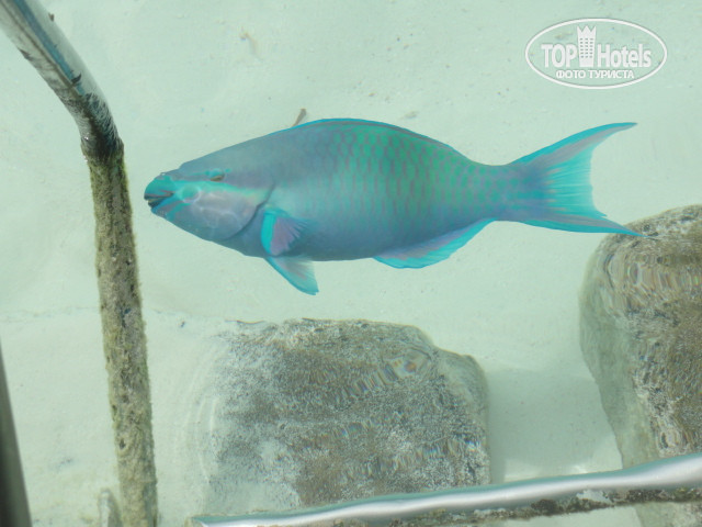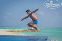 Пляж: белый песочек, чистый. Водоросли убирают каждый день. Вода как парное молоко. С лежаками на общем пляже проблем совсем нет. Купались на разных сторонах острова: с одной стороны (с той, откуда приплывает катер на остров с туристами) бывают приливы и отливы, и волны иногда были, соответственно, больше водорослей выносит на берег; с другой стороны (с той, где бассейн и детская площадка) волн не видели ни разу, отлив-прилив практически незаметны. Купаться можно везде, даже там, где стоят виллы со своими бассейнами и отдельными входами в океан. Животный мир разнообразен, домашний риф хороший. Он находится около дайвинг-центра. Детская площадка старенькая и всегда пустовала. Иностранцы тусуются возле бассейнов. Очень много французов.