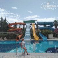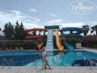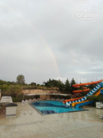 При отеле содержат целое стадо гусей, уток, баранов, два верблюда, парочка павлинов и индюков. Утки-гуси утром на свободном выгуле, с утреца они могут запросто подойти к релакс-бассейно всем выводком и попить водички. Кошаки не наглые их кормят персонал отеля, к отдыхающим они не навязываются. Отель сам выращивает овощи к столу, теплицы видно с балкона. Есть детский луна-парк и мини-клуб. Аттракционы в наш период отдыха не работали т.к. официальный старт сезона с 15.05, мы улетели 14-го. Территория чистая, ухоженная, огромное количество цветов, апельсиноые деревья, оливы, если прогуляться в рощице есть парочка тутовых деревьев, поели шелковицы))
