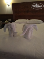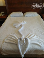 Номер. Нам достался стандарнтый номер на пятом (последнем этаже) с видом на море и окружающий ландшафт. Сразу скажу шум от дороги есть. С открытыми окнами спать невозможно. Но спасает кондиционер. Кондиционер работает только при закрытой двери балкона. Дверь открывается- кондиционер выключается. В номере была большая двухспальная ровать и полуторка. Матрас на зависимых пужинных блоках. Если муж вертится во сне то мое тельце так же теребиться, от его движений на матрасе. Телек, холодильник, кресло, столик. Минибар с безалкогольными напитками бесплатно, пополняется ежедневно. В санузле душевая кабина. С горячей водой проблем нет. Всё работало. Уборка ежедневная, не могу сказать что тщательная, но и мы не свиньи в номере было чисто. За пару долларов и российский шоколад горничная крутила лебедей, слонов и прочие пальмы из полотенцев. Полотенцев, кстати, на нас двоих полагалось какое-то огромное количество. Постельное белье меняли раза три наверное за 8 дней. Мыльно-рыльные тюбики пополнялись ежедневно, в т.ч. кондиционер для волос, так что вот это вот все можно вообще с собой не брать, я обычно кондиционер с собой таскаю оказывается это тоже всё лишнее.