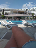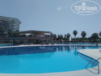 Территория отеля. Не могу сказать что большая. Она скорее квадратная, и в этом квадрате всё как-то компакто размещено. Даже здоровенный луг. 6 бассейнов. Перед центральным входом основной, ватерпольный и детский (я не знаю про подогрев детского бассейна, есть ли он). За правым крылом отеля релакс бассейн с джакузи (детей до 12 лет и мужыку туда брать запрещено). Джакузи включается по времени. За левым крылом отеля- бассейн с водными горками. Горки включат по времени с 10 до 12 утра. И с 3 до 5 вечера. Внутри отеля на первом этаже бассейн и джакузи напротив спа-центра. Вода в бассейнах не пахнет хлором. Видела как в определенные часы ходят мужчины с чемоданчиком отбирают пробы воды ежедневною