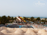Территория отеля довольно большая, про дизайн многое писалось, кому-то нравится, кому-то нет. Горки включались по расписанию, вода в бассейне с горками действительно морская, есть ещё 2 метровый бассейн и «лягушатник», а также бассейн у Талассо Центра, но мы там не купались, по виду он не очищался давно. Кстати, о Талассо Центре, слышали несколько не лестных отзывов, сами не ходили.