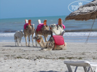 Пляж достаточный для данного отеля,лежаков хватало.Когда было мало(1 раз).то приносили дополнительно.Море прозрачное.когда не штормило и без ветра.Песок такой же как на материке.Водоросли были,но немного и они убирались.По пляжу ходят торговцы,которые особо не пристают(не Египет).Катают также на лошадях и верблюдах(катались на верблюде за 20 динар по пляжу(хотел сначала 40)).Горы лошадиных и верблюжих фекалий не видел(как пишут в некоторых отзывах)