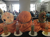 Кормят хорошо! Мясо (говядина), кура, индейка. Рыба не понравилась, морепродуктов пости не было. Один раз давали жаренный крабов, но пец ножниц не было, есть было очень не удобно, да и не очень вкусно... хотя морепродукты просто обожаю... Овощи, фрукты, сладости, мороженко - все было. Соки - порошок. Вино и пиво пить можно.