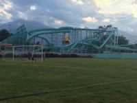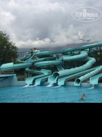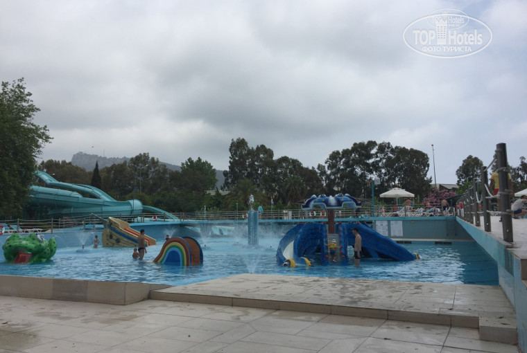 Мы отдыхали в этом отеле с 6 мая по 12 мая. Нас заселили сразу в 9-00 утра. И это было здорово, так как поехали с ребёнком 4 месяца, а второму 5 лет. Хотя положено позднее. И я уже готовилась «устроить» веселье на респешене с малышом, но все обошлось)) сначала мы, конечно, испугались. Зашли в Отель - а там одни турки, повсюду! На ресепшене, в столовой (не ресторан это, конечно, простоват). Просто как-то непривычно, мы раньше всегда отдыхали в отелях, где в основном европейцы отдыхают. Но в итоге это было раза в 2 дороже и не все было идеально. А у этого отеля свои плюсы: огромнейшая территория, со своим футбольным полем, огромной крытой сценой со столами для настольного тенниса, огромный бассейн с 4 секциями: 1-аквапарк (бесплатный большой, 6 горок. Сразу говорю , лучше ехать сидя , пока поняли с сыном, голову отбили; 2 секции для взрослых, и 1-для малышей с большим количеством горок). Огромная детская площадка, я бы даже назвала парк)) с беседками и т.д.) от отеля к бассейну идёт алея из цветов, как тунель. Получается, что в жару ты идёшь и тебе не жарко. Везде навесы, даже у бассейна. Пляж большой, чистый, шезлонгов много, все под навесами, но есть и без. Заходить лучше в тапочках. Я не неженка, но реально камни такие неудобные, крупные, приходилось преодолевать боль ? но зато потом - благодать! 6 мая море уже было нежно тёплое. Не бойтесь, что замерзнете (кто едет в мае). Из алкоголя мне понравилось красное вино около бара в бочках оно стояло, можно самим наливать. Остальное все с каким-то привкусом. Но муж пил виски, сказал -«пойдёт»)) но мы к алкоголю спокойно относимся. Не надейтесь и на свежевыжатый соки, но можно купить на завтрак свежевыжатый апельсиновый сок за 1 доллар. И кофе в кофемашинах такой с привкусом, непонятный. Но я приняла это как данность. Зато большой выбор блюд, свежие сыры, мясо, курица, были ещё мидии, креветки и утка в разные дни. А так всегда есть и мясо, и курица, и рыба. Много овощей, зелени, фруктов, десерты. Нас радовали в большом количестве турецкие десерты и фрукты. А! Есть ещё огромное футбольное поле. В футбол сын постоянно играл с турками ?фруктов было немерено на обед и ужин! Клубнику некоторые соотечественники тарелками с горкой выносили. А так были апельсины, яблоки, нектарины, абрикосы, грейпфруты, какие-то местные сливы и алыча, ну и моя любовь - клубника?десертов-не счесть! Очереди несколько раз были за едой в дни, когда там проходили саммиты каких-то спортсменов, и то потому, что те сами выстраивали очередь, вместо того, чтобы подходить к нужному блюду. А так мы обходились без очередей. И нет проблем со столиками. Места много. Нравилось обедать на открытой террасе над бассейном. Свежий ветер, горы и еда -хорошо сочетаются. Конечно, этот Отель не очень «навороченный», все таки 2011 год постройки-не новый, но у него очень шикарная территория, огромный пляж, бассейны чистые и большие, аквапарк-то что надо и для больших и для маленьких детей. И есть огромный бассейн для самых маленьких туристов)) ну и цена вполне адекватная за этот Отель -на 2 взрослых , 1 ребёнок 5 лет и 1 ребёнок 4 месяца -68 тр ? просто подарок!? хамам так себе. Бесплатный хамам Общий для мужчин и женщин и я люблю жаркую баню, так мне так, как мертвому припарка)) спортивный зал пыльненький такой, тренажеры тоже не последних лет. Но я неделю могу обойтись без зала)) я еду за морем, солнцем, Цветами, ф