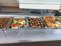 Ужин: Тоже столы ломятся! А также вы услышите запах мяса еще издалека, потому что всегда что-то жарят на улице при входе в столовую . Без мяса тоже не останетесь . Подходить надо с тарелкой и положат, правда сами. Это бывает и курица, которая жарится как для шаурмы, и ножки куриные, и крылышки, и печень куриная, какие-то свиные полуфабрикаты ( из фарша, невкусные), там же можно взять иногда горячего булгура. Внутри в помещении тоже есть курица, но тушеная с разными овощами опять. И плюс рыба. Жареная вкусная. То есть вы можете поесть и курочки, и рыбки сразу. Опять же куча овощей и гарниров. И опять травят сладостями! 3 раза пекли 2-х этажный торт!!!! Я когда увидела, думала, что может день рождения у кого-то, ан нет, это для них испечь нормально. Торт бисквитный, с кремом и цветным каким-то кремом. Вкуснооо…Фрукты опять же есть.