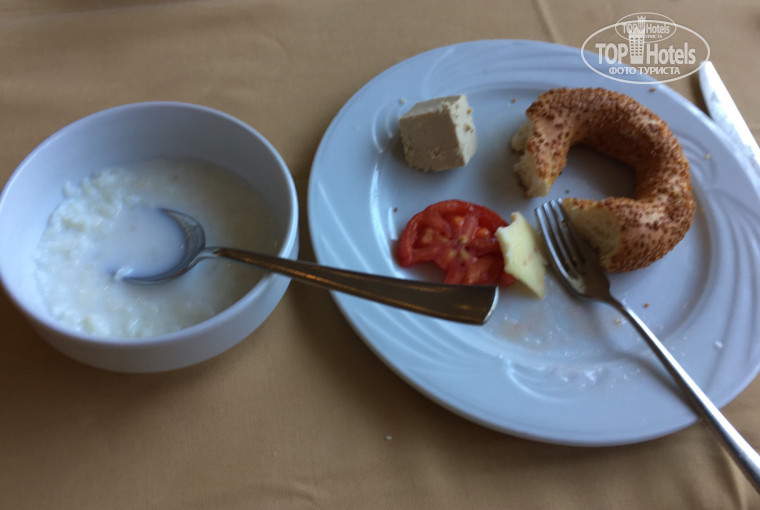 Еда в первый день была ужасная: на завтраке стоит куча больших мисок с непонятными соусами, вместо каши - вода молочного цвета с непроваренным рисом. Более менее можно было есть яичницу, но она есть где-то первый час с начала завтрака, оладьи отвратные, сухие завтраки можно залить только водой молочного цвета, вкусные бублики с кунжутом, запеченые с сыром помидорки. Овощи ещё можно взять. На обед и ужин были какие-то котлеты и что-то типа нагетсов, абсолютно не из мяса. Ели тушеную курицу, огурцы, помидоры, саоатные листья. На обед и ужин подают выпечку, в основном тоже очень химозную: ярко крашенную с очень ярким ароматом. Мы ели пахлаву. В последующие дни появлялись говядина, утка и рыба, но не каждый обед и ужин. Мороженое в 15ч до 17ч, на вкус тоже странное, особенно клубничное ядреное.