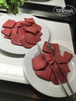 Заселившись, мы побежали искать, где поесть, так как не хотели ждать полчаса ночной суп. В кафе мы оставили 10$, ничего не съев, так как есть невозможно... Вкус несвежей еды, замаскированной кучей специй. В первый же вечер захотелось домой, так как все эти мелочи очень раздражают и портят отдых. К тому же, купив путевку по-дороже, мы надеялись избавить себя от всех этих проблем. Сайт отеля на момент выбора отеля не работал, поэтому информацию я искала просто в интернете. Так, я прочла, что в ультра all inclusive есть соки, разнообразные фрукты, мороженое. После ужасного вечера надежда была на эти блага. Фрукты были: яблоки, апельсины, груши, иногда можно было среди украшений блюд найти ломтики грейпфрута, один раз киви, арбуз был кубиками в составе салата с яблоками и грушами, залитого каким-то маслом. Соки свежевыжатые платные, и только из яблок, апельсинов и груш. Бесплатные - химозные «концентраты» в автоматах. Зачем-то на ресепшн нам пообещали, что будем много разных фруктов, в т.ч. клубника.