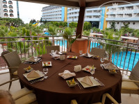 С питанием все отлично. Морепродуктами не балуют конечно, огромного разнообразия нет, но выбрать всегда есть что. Всегда есть свежие блюда на гриле, разные салаты, фрукты, много десертов. Для ребенка не хватало диетических блюд (по типу паровых овощей, они были,но не всегда) и много острых блюд, но все равно всегда находили чем дочку накормить. Аля карт бесплатный, их несколько (были в одном) обслуживание медленное и просьбы принести пиво, могут забыть, но все очень вкусно, хорошая подача и само расположение. Ресторан на втором этаже, с видом на бассейн и территорию отеля, симпатично.