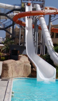 Работает хороший аквапарк , где есть 9 горок для взрослых , несколько горок для детей, отличным бассейном с волнами, ленивой рекой. Считается третьим по крутости аквапарком Шарме. Бегали каждый день по часу.