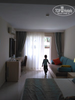 Приехали после обеда - заселили сразу. Бронировали номера эконом, а ключи получили от стандартов без просьб и доплат. К моменту выезда корпус эконом так и был не заселен. Мы попросили номера на 2-3 этаже, Феридэ немного посомневавшись будет ли это безопасно с 4х летним ребенком, все таки поселила нашу компанию в два соседних номера на втором этаже 4го корпуса. Расположение нам понравилось - крайний корпус, рядом с выходом на пляж. Оба номера очень похожи - точно такие как на фото. Дополнительный комплект постельного белья для ребенка, после просьбы на ресепш, вечером принесли в номер. Убирали ежедневно, полотенца, постель меняли, воду приносили и оставляли под дверью даже если мы отказывались от уборки из-за дневного сна.