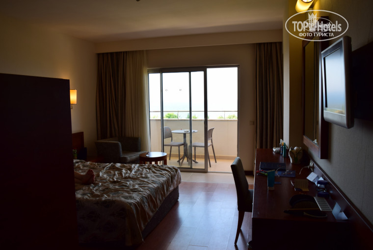 Отель очень понравился. Привезли в 11:30, покормили и сразу же заселили, не дожидаясь 14:00. Покупали путевку с балконом с видом на сушу, а дали с прямым видом на море на втором этаже. Мы очень обрадовались этому. В номере чисто, убирают каждый день. Все работает.