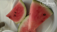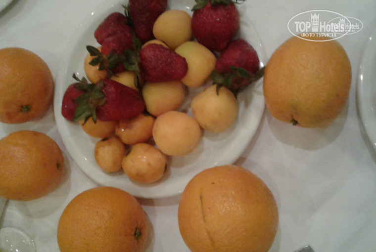 Завтрака, конечно скудные.яйца варёные, глазунья, омлет. Блинчики, сыр, колбаса, выпечка. Обед и ужин хорошие, вкусно приготовленные. Было много рыбы, мяса,фруктов - финики, апельсины, абрикосы, нектарины, дыни, арбузы, клубника. Из морепродуктов один раз давали кальмаров, один раз мидии, но они были неправильно приготовлены, невкусные.Места всегда хватало, еды тоже. Если придешь попозже, очередей практически нет, а еды достаточно.