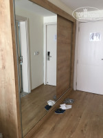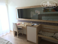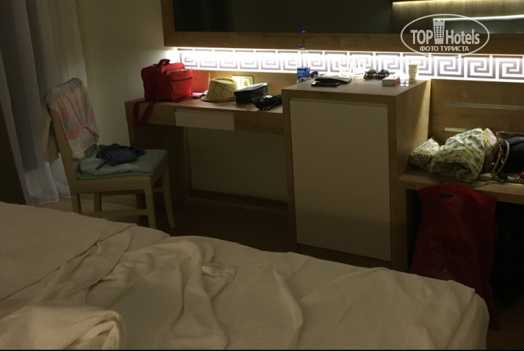 Теперь по номерам. Ремонт сделан, видно что на скорую руку- очень много косяков. Но на качество отдыха это не влияет. Номера стали светлее и уютнее. Двери все окрасили с чёрного в бежевый, Мебель тоже стала приятного оттенка с текстурой дерева. Плоский телик встроенный в зеркало эффектно смотрится. Система кондиционирования осталась прежней. Сантехника поменяна, ничего не подтекало, все работало исправно. Уборка ежедневная, по просьбе меняли полотенца.