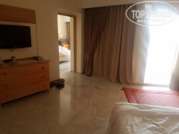 Брали поездку у Анекс-тур. Нас трое взрослых, бронировали 3-х местное размещение. Прилетели в Энфиду рано утром, в аэропорту встретили представители туроператора. Сразу скажу, что с Анекс-тур отдыхала впервые. Но нареканий никаких не было. Все вопросы решались и вполне оперативно. Гиды отличные! В отель прибыли около 7 ч. утра. Начитавшись отзывов, что при заселении всегда селят в плохой номер и тем самым вымогают деньги, мы сразу дали 10 долларов, чтобы заселили в хороший 3-х местный номер. Но нас привели в 2-х местный номер и сказали, что принесут 3-ю кровать, на что мы категорически отказались, т.к. 3 взрослых человека в 2-х местном номере - это ужасно тесно! Оказалось, что муж им дал дополнительно на ресепшен еще 10 евро и в итоге никакого 3-х местного номера не дали. Я была возмущена: за что тогда 10 дол+10 евро взяли? За 2-х местный номер для троих??? считаю это наглостью персонала на ресепшен! После долгих препирательств нам дали 2-х комнатный большой номер с 2-мя балконами, 2-мя телевизорами, в 1 комнате 2-х спальная большая кровать, во второй комнате 2 отдельные кровати и диванчик. Пытались из нас еще вытянуть денег, говоря, что номер дорогой и т.д., но мы были непреклонны. И им пришлось смириться, что больше денег уже не дадим. Короче номер шикарный, но пришлось понервничать! Это единственный отрицательный момент из всего отпуска. Все остальное просто на высшем уровне! Кстати вай фай на территории всего отеля и очень приличный. Не доставал только на пляже и иногда сбивался у бассейна. Но это мелочи. В номере отлично ловил. Наш номер был на 2-м этае (по их меркам это 1-й этаж). С 1 по 4 этажи для некурящих. С 5 по 7 для курящих.