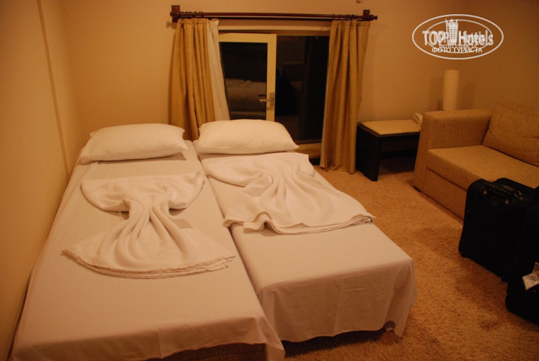 А теперь вернёмся к теме. Номер в ночи нам так и не поменяли, но подключившийся к беседе хозяин отеля заверил, что завтра всё будет таки улажено в районе 9 утра. Остаётся добавить, что переселили нас в итоге в районе 12, хотя подошли мы на ресепшн к 9, как и договаривались. Поселили на 1 этаж с видом на бассейн, и по иронии судьбы, дискотека на этот раз оказалась прямо под нами!!! Переселяться во второй раз сил уже не было, так что до конца отдыха мы зпытались уснуть под одну и ту же шарманку. К слову, если вас всё-таки занесёт каким-то плохим ветром в этот отель, не берите номера с видом на бассейн, уснуть там невозможно! Хоть вы с видом на горы и получите шум анимации до 12 ночи, то это несравнимо с музыкой до двух ночи!
