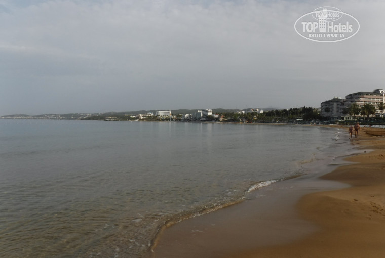 Пляж: Когда едешь вдоль берега, видно как много галечных пляжей. Здесь - песок( красный, липнет к ногам, но песок). Дети перекапывают весь берег. Направо от центрального входа есть крупные валуны-осторожно. Вода прозрачная. Буйки огораживают достаточно большую территорию для плаванья. За ними полно водных развлечений-практически весь спектр. Лежаки под общими навесами. Кроме 1й линии их народ таскает как удобно, приспосабливается под солнце. Было много отзывов о нехватке лежаков. Сейчас висит объявление, что вечером все оставленные манатки отель собирает. Поэтому у нас не было никаких проблем занять 2 лежака рядом, ни утром, ни после обеда. Может это зависит от социальной группы отдыхающих соотечественников, тогда нам повезло.