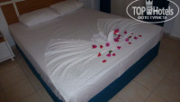 Номера: Отдельные 3х этажные домики. Комната-1,5ка, т.е. две кровати-2х и 1 спальные в отдельных помещениях. Санузел совмещенный, душ. Пузырьков одноразовых нет. Гель и мыло в дозаторе. Меня не смутило, я всегда пользуюсь своей косметикой. На балконе широкая сушилка и пластиковая мебель. Кондер и тв- все работало. Уборка-вынос мусора и замена полотенец. Очень приятный бонус- в день заезда в минибаре бесплатно на каждого по 1 бутылке: пепси, фанта, минер.вода. Плюс на двоих 1,5л обычная вода. Воду 0,5л можно брать по всему отелю в холодильниках.