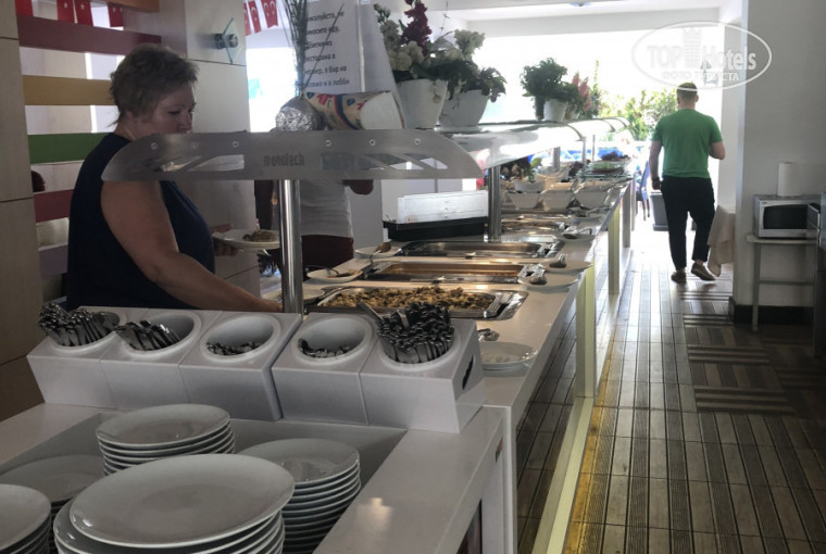 Ресторан и бар находятся в блоке "D". Еда нас немного огорчила - мало выбора, но голодными не останетесь:) Было много салатов, овощи, а вот рыбы за 8 дней не было, из мяса курица. Из фруктов только апельсин и грейпфрут. Мы покупали фрукты в местных лавочках. Если вы хотите попробовать турецкие сладости, то вам дорога в магазин (которых огромное количество), в отели их нет. По напиткам: пиво, газировка, кофе, чай, вино красно/белое и крепкий алкоголь стандартный вариант для «Все включено».