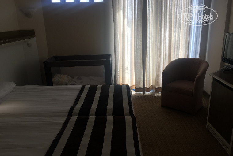 Встретили нас хорошо,сказали позавтракать и разместили в главном корпусе на 5 этаже ,окна выходили не во двор где бассейн (сказали там шумно) а набок ,нас это устроило вид со всех сторон хороший ,зелено и все равно море видно и даже горы,для ребенка в номер нам поставили детский манеж-кровать.