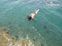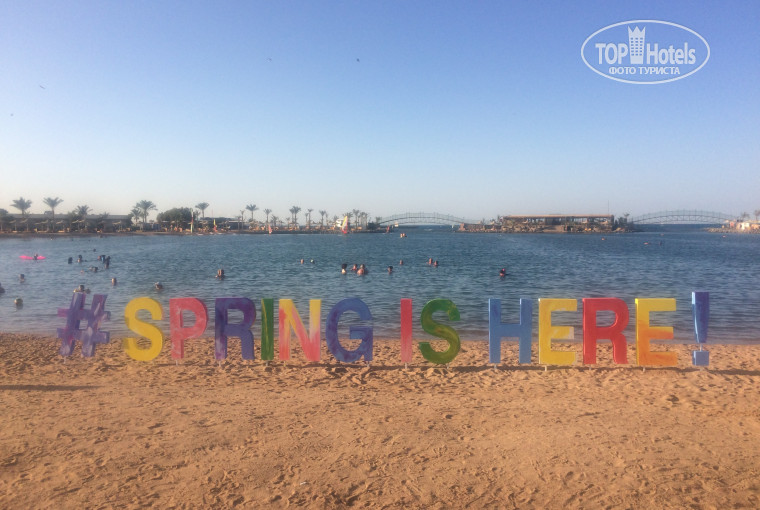 Выбрали отель в основном из-за моря и удобной лагуны. Во многих отелях Хургады большая проблема в пляжах. Если отлив, то это настоящая печаль: идти до глубины далеко, если есть пантоны, то сразу в глубину. Здесь этих проблем нет. В лагуне песочек, нет кораллов, но глубины хватает, чтобы купаться и даже кататься на виндсёрфе. Ходили мы и к морю непосредственно, справа от лагуны есть немного кораллов, где я поплавала с маской и увидела рыбок и ежей. Пляжи всегда были чистыми и ухоженными. Нам больше всего нравилось лежать возле частных крутых домиков справа от лагуны. Там почему-то меньше всего людей, много свободных лежаков и в целом посимпатичнее.