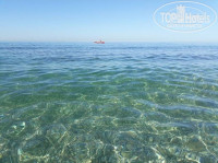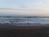 Пляж - песок с галькой. По центру вход нормальный, по краям плиты. Особо нежным советую надевать специальные тапки. Мы обходились без них. Так полезнее. Шезлонгов хватало всем.