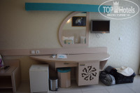 Нас и еще двух сестер из Москвы, которые прибыли с нами одновременно, повели расселяться. Чемоданы катили мы сами. Привели нас в корпус Даймы Резорт (хотя путевки выкуплены были в Дайма Биз), который находился на ремонте, в подвальный этаж. Первое впечатление - шок. Застиранное постельное белье и полотенца. Сырость. Оборванная одна штора. При прикосновении к ручке на ванне она отвалилась. Все старое, затертое, с ржавчиной. На балконе вид на земляной вал. При этом мусор в коридоре и в номере. Фотографий этого номера и корпуса нет - не до того было... Пригласили работников с рецепшена, которые сообщили, что в отеле нет свободных номеров, что нам нужно провести ночь в этом номере, а на следующий день нас переселят. После долгих переговоров нам с сестрой и девушкам-сестрам из Москвы предложили семейный номер в одном из корпусов Даймы Биз на одну ночь с обещанием расселить нас на следующий день в нормальные отдельные номера. Утром следующего дня встретились с отельным гидом, работниками рецепшена - нам предложили остаться в семейной номере - с чужими людьми, от чего мы, конечно, отказались.
