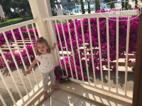 Отдыхали в конце мая с семьей. Отдых планировался ленивый, без экскурсий, так как наездились уже с маленькой дочкой по др странам и решили, что детям тяжеловато с такими активными родителями и выбрали Турцию для детей на 14 ночей. Заехали в отель вечером. В нос ударил аромат сосен и каких то неведанных мною , запахов уж очень приятных. Номер дали , пошли смотреть, испугались, что будет шумно, попросили другой. Это другой я сама бы не нашла, если б я что то забыла там, так как сначала лифт, потом долго по коридору, потом лестничный пролёт и это все с коляской на руках. А если старшая дочка пойдёт, так точно заблудится. Попросили вернуть тот первый номер. Он 114 номер. Закрыли окна и шума не было. С утра немного обрадовались. Вид был на бассейн и море. Под нами был магазин какой то. На балконе вьюны ярко розового цвета.