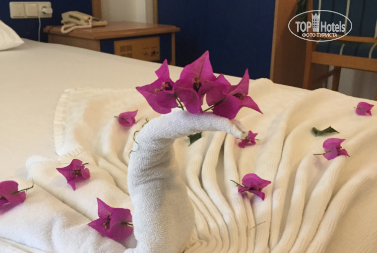 Отдыхали семьёй с 26.05.2018 по 6.06.2018.Ехали с аэропорта примерно 2,30 часа до отеля с остановкой по хорошей дороге.Развозили туристов по отелям.В отеле заполнили анкету и пошли сразу обедать,а к двум заселили.Номер хороший,почти двухкомнатный,все работало.Убирали каждый день.Как то оставили доллар,так накрутили из полотенца лебедей с цветами.Питание очень хорошее,вкусное:овощи,оливки,из мяса были курица,индейка,баранина,перепелки.Каждый день рыба разная и на гриле и жареная.Овощи на гриле каждый день.Вино белое и красное,пиво,амаретто и прочее.Возле пляжа бар с 11 до 16-00 лепешки гезлеме и прочее.Мороженое.Вечером анимация для детей и взрослых.Территория большая,зелёная,везде чистенько.Отель на 90% заполнен россиянами,европейцев нет.Пляж очень хороший,вход постепенный ,песок и камешки.Шезлонги бесплатно,но занимать надо с ночи и также у бассейна.Интернет платный,4$ в день или 19$ за 10 дней.Правда немножко огорчила звукоизоляция вернее Ее отсутствие.Если в соседнем номере кто то кашляет ,то слышно всем,но это не страшно,привыкаешь.Экскурсии на яхте и на джип сафари берите,не пожалеете.Вообшем все отлично.Если в 4*так хорошо,то что говорить о 5* .