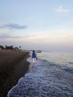 Море в шаговой доступности. Пляж мелкие камни и песок. С утра море было спокойным, после обеда волны. И как всегда поражало занятость лежаков. Эти одинокие полотенца на пустых лежаках целый день лежащие просто так. Ну это как везде. Свободные лежаки найти можно. Но это начало сезона... дальше больше, и людей и полотенец).