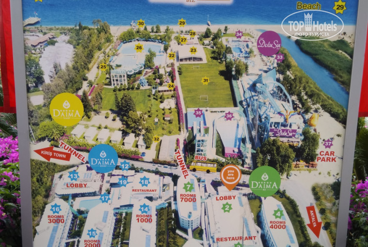Да, это два отеля - у Дайма Биз 5 корпусов, у Резорт - вроде 3. От каждого отеля идет отдельный туннель под дорогой - на общую территорию Дайма Плэнет (бассейны, бар, анимация, миниклуб и пр.) и к пляжу, тоже общему. Т.е. территория раздельная только там, где жилые корпуса. Но между отелями пройти можно. Причем есть дорожка между ними рядом с дорогой- там калитка, закрытая. Но охранница нам открыла (мы шли из Кириша и зашли через Резорт, шли к себе в Биз). А вот в глубине территории уже никаких разделителей нет, я как то ночью гулял, по их территории прошел.