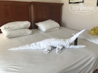 Номера просторные, есть встроенный шкаф, сейф, холодильник, кровати, тумбы, зеркала, постельное белье, полотенца меняют каждый день, приносят по 2 бутылки воды. Так же в номере есть чайник и чайный набор! Ванная комната конечно не ахти! Но привыкнуть можно! Ремонт старенький, мебель и белье потрепанное!