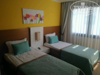 Заселение. Номера ждали до четырех вечера. Номер дали, как и просила, на втором этаже, к тому же и двухкомнатный. Вид с балкона частично на соседнее здание, частично на территорию и проезжую дорогу рядом с отелем. Полы грязные, столы тоже протирала сама влажными салфетками, в остальном все норм. Были тапки и халаты. Проблема возникала только с водой, не могли настроить теплую воду - то лилась очень горячая, то становилась очень холодной, получался не очень приятный контрастный душ, все время отпрыгивали от струи... На второй и третий день убирались (заправляли постель, меняли полотенца), остальные дни уборки не было. Полы ни разу не помыли, хотя я общалась с гестрелейшен по данному вопросу. На второй день принесли бутылочку красного вина и тарелочку с черешней, алычей и апельсином. Приятный бонус. В номере в день заезда напитки бесплатно, далее платно.