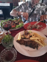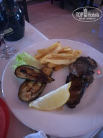 За территорией отеля, как и писали раньше, есть магазины и кафе. Кафе на любителя, в целом вкусно, большие порции. На двоих потратили 160 динар (сейчас курс 1 доллар 2,52 динара). Это с бутылкой красного вина. Но в кафе вино 40 динар, а в Дженерал 14. Путь: из отеля резко направо по дороге, метров через 250 пешеходный переход на повороте с указателем "маркет". Перейти дорогу и по грунтовке также метров 250-300 до кафе и магазинчика.