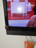Телевизор в номере оснащён защитой. USB видит, но не читает. Включается кнопкой слева на панели сзади и пультом. Если не выключить кнопкой ТВ - синий экран.