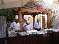 Отель понравился, несмотря на ниженаписанное :). Находится в оживленном районе. До Нью Марины 15 мин. пешком. Небольшая уютная зеленая (в отичие от "Aqua fun" ) территория, есть фруктовые деревья, зелень отформована, пострижена. Чисто, все метут, моют, поливают. Есть детская лазилка с горкой.Бассейн не подоргевается, холодный, но некоторые купаются; чистят каждый день. Пляж небольшой, но достаточный, из двух частей. Лежаков хватало. Рядом бар. Есть пирс с причалом от которого отходят экскурсионные кораблики (группы идут по территории отеля, но аккуратно скраешку и быстро, это не мешало) с пирса приятно кормить рыб, есть дайвинг центр и аква-центр(морские прогулки). Ездили на прогулку на остров - на кораблике Prince Faris (новенький-красивенький) от Hassаn, очень понравилось :). Заход в воду песок (я была с ребенком и это имело значение), пара-тройка камней о которые народ ранит ноги, но надо аккуратно в воду заходить и нет проблем. Рядом три рифа с классными рыбами, кому мало - можно доплыть до общественного пляжа или дальше, до пляжа "ROMA", но там плохое дно, все в камнях, можно пораниться. Пляжные полотенца уже серенькие, но меня не напрягало. Кормили хорошо, 2-3 вида мяса, рыба, иногда были крабы. Фрукты были всегда 3-4 вида, но не всегда спелые. Напитков всем хватало, но за ужином выстраивалась очередь. Напитки, как наверное везде в Египте, кофе растворимый и разбавленный, чай из пакетиков, юпи. За спиртное то надо было расписываться в каких-то бумажках, то не надо :) Учет у них вобщем :) Анимация: зарядка на солнцепеке с переменным успехом, танец живота, аквааэробика, волейбол; вечером раз в несколько дней самодеятельность аниматоров, раз в неделю факир шоу. Прочие шоу за доп. плату. Верблюд на пляже за доп.плату присутствует, можно прокатится :). Мебель в номере на металлических каркасах, встроенный шкаф с фанерными дверками, телек, фена нет. В сан.узле ванна без пробки и без шторки – и ванну не принять и стоя не помыться. :/ Немного о грустном – с отелем соседствует "Aqua fun" с одной стороны и общественный пляж с дискотекой с другой. Мы жили со стороны этой самой дискотеки на 1 эт. Вобщем я спала в бирушах :/ Но выше было еще громче. Номер дали наверное не самый плохой, но электричество постоянно отключалось (в течении 2 дней положение улучшилось), дверь в сортир без замка (мне было не удобно, т.к. ездили втроем), но самое печальное это отделка новых этажей за стеной и служебная дверь, через которую громыхая периодически шастал персонал. Менять номер не хотели, но все возможные недостатки старались искоренить, за что спасибо большое, после 11 вечера больше не стучали молотками. По просьбе нашего «прекрасного» ГИДа (он договорился, что мы непременно сунем 10 у.е. рецепшн) предложили номер там же, только выше этажом с видом на море, хоз. двор и соседнюю дискотеку :/ Вобщем больше мы не настаивали. Самое противное было в последние 2 дня: рядом с номером была тех.шахта из которой в течении 2 последних дней в большом количестве вылезали в коридор полудохлые тараканы от1 до 4см. До номера по коридору ходить было…неприятно :( . Номер 113, если кому интересно. На улице вечером кто-то постоянно кусает за ноги, а так же в изобилии москиты. Но это все может случиться с каждым. В остальном отель очень уютный.