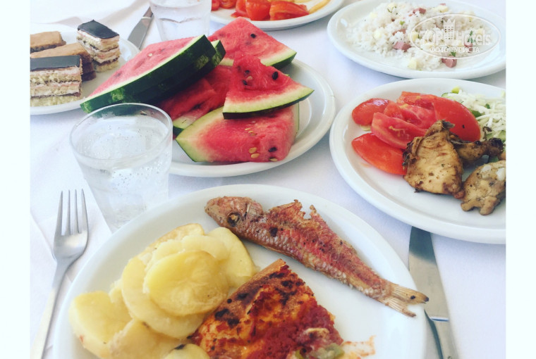 Из минусов: из-за большого количества туристов обед и ужин разделили на две смены. При заселении гостям на номер дается либо зеленая, либо розовая карточка, которая указывает на то, в какое время вы можете приходить кушать. Но это не решило проблему с нехваткой столов. Столы очень быстро убирают и заново сервируют, новые блюда подносят, когда предыдущие еще не закончились, еды - полно, но сесть негде. Все занято! Справедливости ради, я уточню, что помещение ресторана совсем не маленькое, так же есть уличная веранда. Просто гостей слишком много.