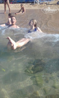 Море в этом месте очень красивое, прозрачное, а к сентябрю хорошо прогретое, купаться было в удовольствие! Заход песочек с мелкой галькой, достаточно комфортный. В воде кое-где камни, но так как вода прозрачная, их видно