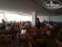 В один из дней на входе ресторан натянули красно-белую аварийную ленту, чтобы люди не приходили занимать столы за полчаса до приема пищи)) но предприимчивые россияне находили пути обхода по каким-то тайным лестницам )) Цирк))