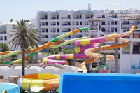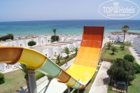 Сначала о плюсах. Территория достаточно большая, от рецепции до пляжа, по прямой, метров 600-700, в меру зеленая, в меру ухоженная. Имеется свой аквапарк, на который мы и купились, состоящий из 2-х частей и детского. Части работают по сменам, одна сторона с 10.00 до обеда, другая с конца обеда до 16.00, вроде. Очереди есть, но небольшие. Скатился, отдал ватрушку, встал в очередь, за этим следят обученные люди. Детский работает постоянно с 10.00-16.00. Пляж свой, лежаки и зонтики от отеля, если с вечера дать полотенце с динариком и показать какое хотите место местному директору шезлонгов, то нет нужды вставать в 5-6 утра, занимать место. Во время нашего отдыха на море было волнение, волной нагоняло грязь и водоросли, водоросли чистили. По пляжу постоянно ездят их менты. Проживали в бунгало, как оно нам досталось немного ниже, оставляли каждый день по 1/2 динарика, в принципе было чисто, тут без нареканий