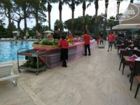 Отдыхали в июне 2018 г с родителями и ребенком 5 лет. Приехали в отель в 12-00, сотрудники на ресепшен не очень вежливые(делают вид или просто не хотят понимать по русски), но есть и русскоговорящие сотрудники советую обратиться к ним. Браслеты одели сразу , но заселение сказали ждать до 14-00. Мы стали доставать купальники чтоб переодеться и пойти искупаться и тут же нас подозвали и сказали что наш номер уже готов. Номер не ахти в корпусе с видом на сад (обшарпанный и маленький, у родителей был куда больше номер на 2 человек ,чем у нас на 3-х), но в целом сойдет. Сейф мы не брали (телефоны и деньги оставляли в тумбочке, ничего никто не тронул). Интернет тоже не заказывали и замечательно отдохнули без него. Питание в отеле отменное, каждый найдет себе по вкусу, выбор большой( был рыбный день давали раков, крабов, устрицы и мидии),очень вкусное мясо на мангале. До моря идти 3 минутки (я быстро хожу),море чистое, лежаков на пляже хватает всем. На территории есть 2 бассейна один более тихий у нашего корпуса, второй рядом с рестораном более активный, так всегда проходили игры, анимация(проблемы с лежаками там были часто, т.к наш народ любит занять лежак но купаться на море).Анимация супер, особенно Анна -лучший аниматор! Ну и Руслану тоже большой респект! Вечером в отеле проходит дискотека для детей, после нее представление, либо дискотека(была пенная дискотека у бассейна). Не советую покупать сувениры на рядах возле отеля -очень дорого. За сувенирами и по шоппиться едьте в торговый центр NOVA MOLL ( отделы Вай кики, Де Факто, Котон, Дешман и супермаркет Мигрос в котором Гранатовый соус можно купить за 3 лиры , а у отеля от стоит 3 $) автобус номер 2 отходит прямо от отеля проезд 3,5 лиры (лучше поменять деньги в лиры не все отделы ТЦ принимаю $, да и выгоднее в лирах, мы меняли деньги прям в ТЦ отдел Золото).Обратно ехать на автобусе 10 прям до отеля. Также мы ездили своих ходом на автобусе до Сиде(конечная) там находятся Колизей и развалины Храма Аполлона (эту экскурсию гид предлагал за 25 $, нам она обошлась в 7 лир за проезд).Отдыхом очень довольны, хотим еще вернуться туда. P.S : Отеля рядом стоящие куда круче чем Меритим , но прогулявшись по их пляжам мы сделали вывод что людей там не так уж и много(пляжи пустые). А наш пляж и отель был заполнен людьми, что для меня является плюсом, люблю движуху!